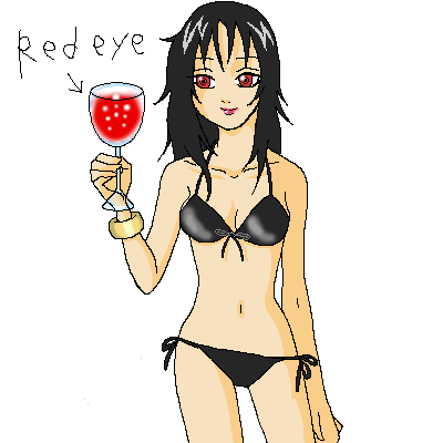 吸血鬼かなんかみたいに見えかねないですが、グラスの中はレッドアイです。ベタですが。