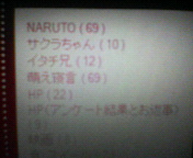 かなり見にくくて申し訳ないですが、今のこのブログの右カラムのカテゴリー部分のNARUTOカテと萌え寝言カテの記事数も69^^*