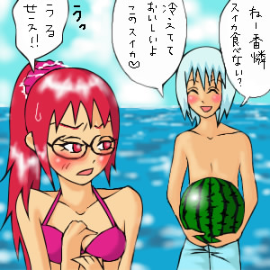 すいかゼリーというやつを頂きながら描きました。