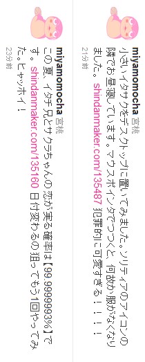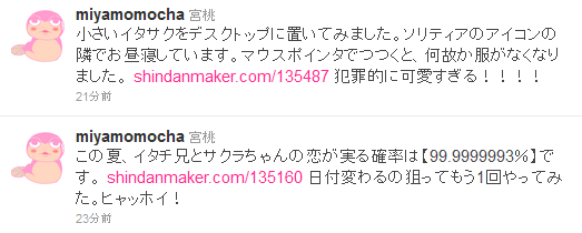 ついったで思い出したけど、最近診断して結果があまりにもかわいくてキャプってしまったので貼っておきます。